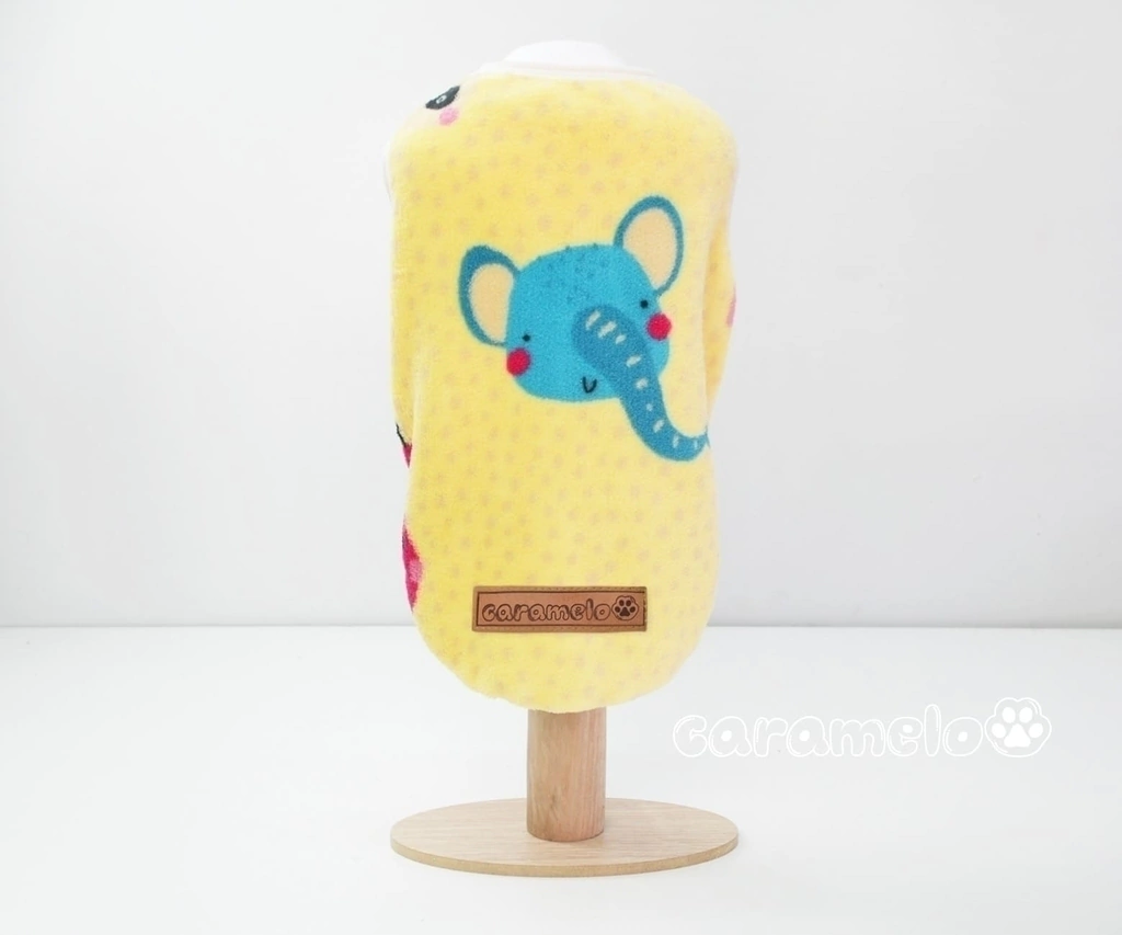 Camiseta em pelúcia e malha com peito azul.