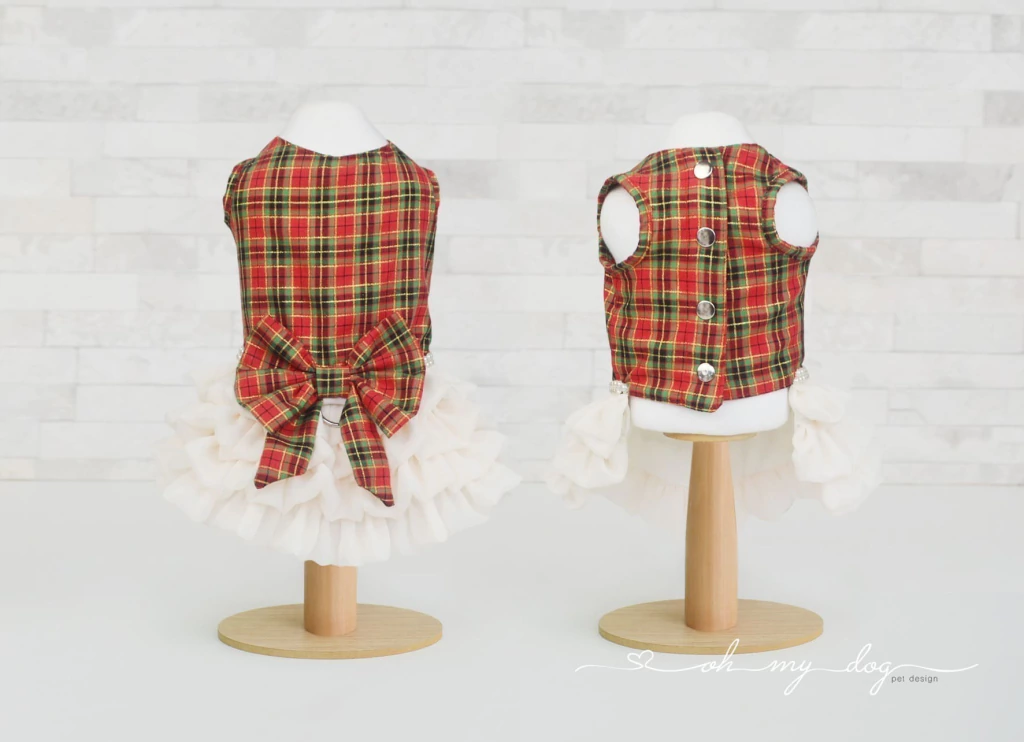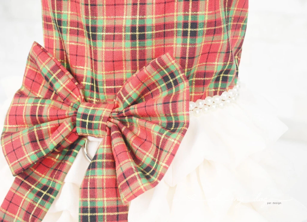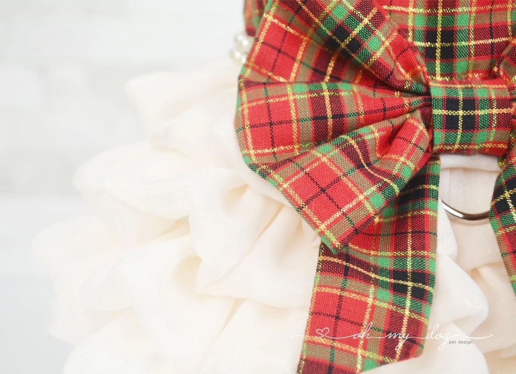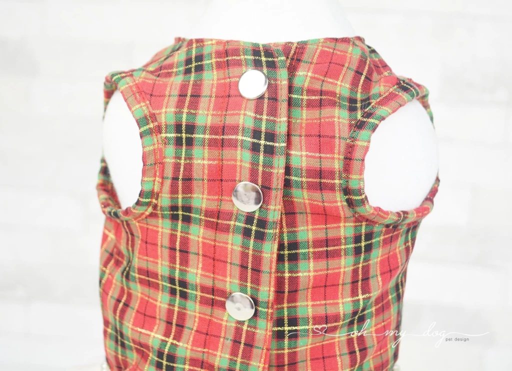 • Peitoral em tecido plano e babado.